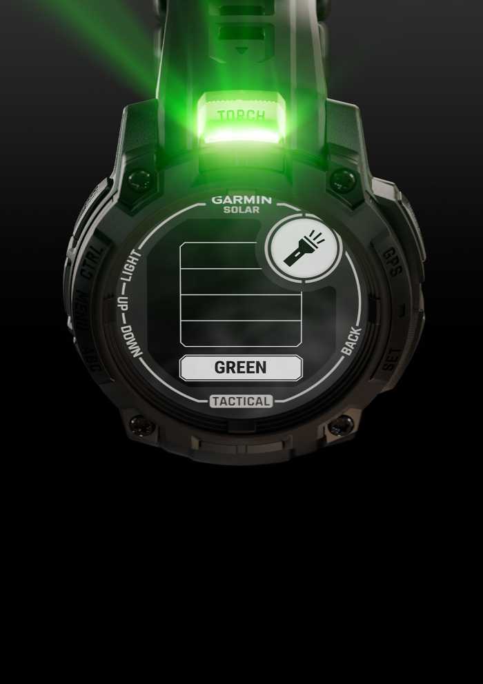 Láss és látszódj a beépített zseblámpával, amely állítható fényerőt és választható zöld fényt is kínál. A zöld fény kevésbé zavarja az éjszakai látást, nehezebben észlelhető messziről, és jól kiemeli a természet részleteit sötétben.