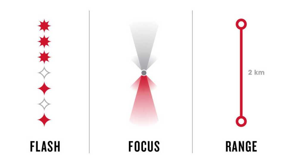A Bontrager nappali menetfény kompakt és nagy teljesítményű, és megszakító vakumintával rendelkezik, amely nappal akár 2 km-re is látható.