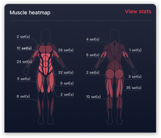 Edzés végeztével megnézheti izomhőtérképet, hogy melyik izomcsoport lett megdolgozva a nap során, vagy épp heti nézetben. Így segít meghatározni az edzés következő blokkját.