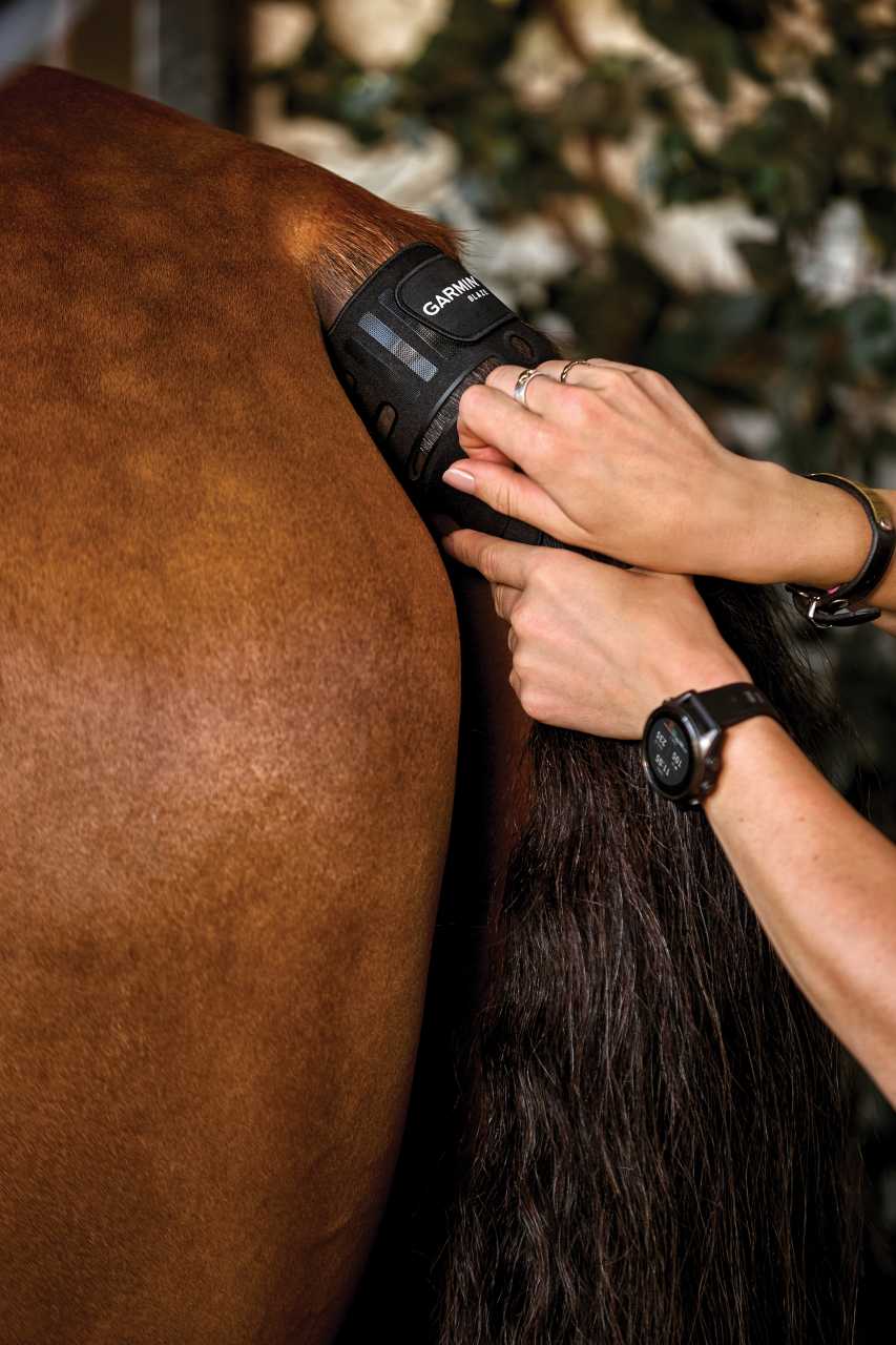 Az egyszerűen rögzíthető farokpánt a ló farka alá helyezve tartja a szenzort, amely így különleges bőrelőkészítés nélkül gyűjti az egészségi és fittségi adatokat.