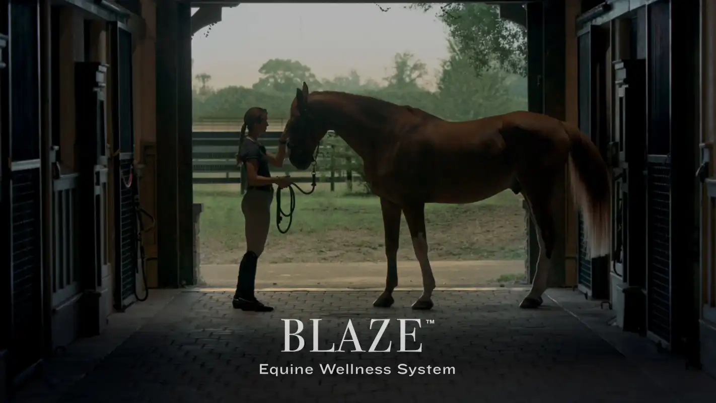 A Blaze lóegészségügyi rendszer tartós és mosható neoprén pántot tartalmaz tépőzáras rögzítéssel, valamint egy kivehető, könnyű és energiahatékony szenzort.