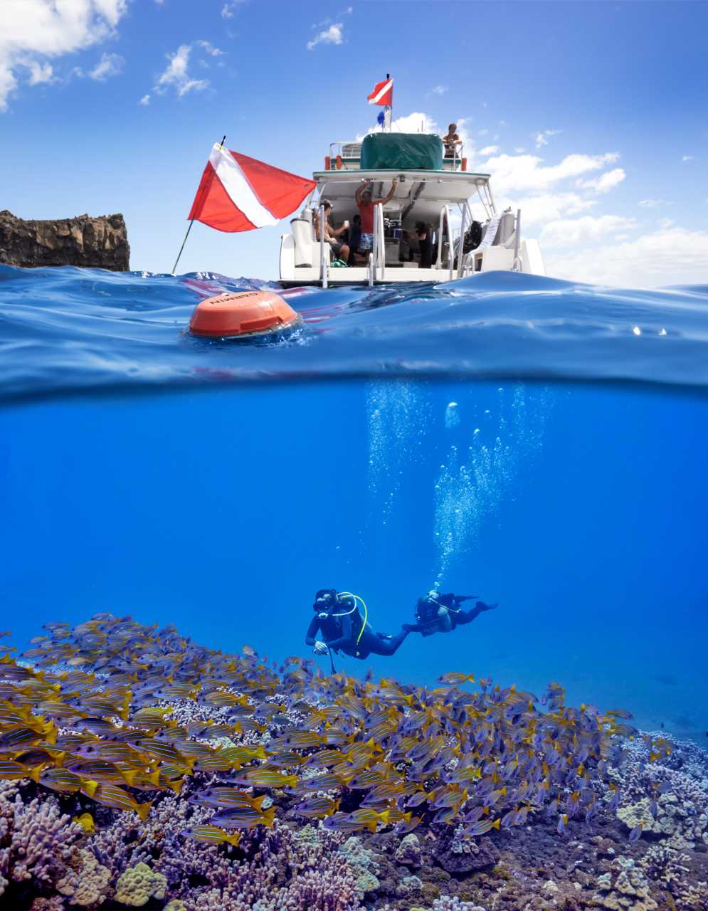 Ez a forradalmi búvár kommunikációs bója a Garmin búvárökoszisztémával működik együtt, lehetővé téve a felszíni csapat számára, hogy nyomon kövesse és figyelje a búvárcsoportokat – valamint előre beállított üzeneteket küldjön a kompatibilis búvárkomputert1 és Descent™ T2 adó-vevőt használó búvároknak. A hálózatba kötött búvárok azt is láthatják, milyen messze vannak a bójától, és milyen irányba kell visszatérniük2.