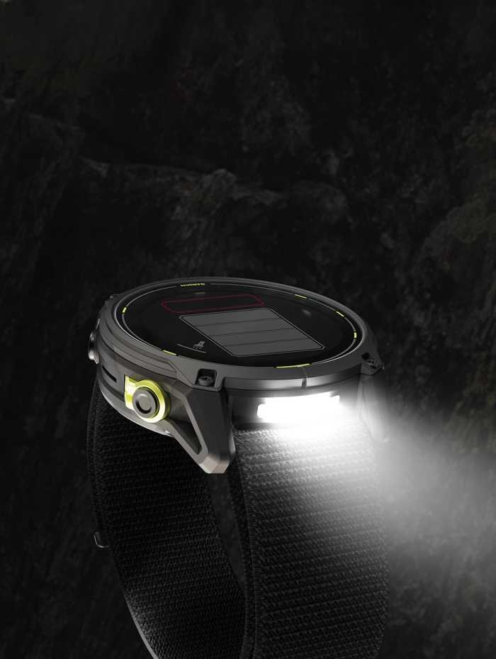 Világítsd meg a kalandjaidat a beépített LED zseblámpával. A változtatható fényerősség és a piros biztonsági fény nagyobb láthatóságot biztosít sötétben történő edzés közben — a stroboszkóp üzemmód pedig akár a futás ütemével is szinkronizálható.