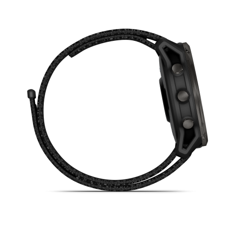 Nagyon logikus lett, hogy csak egy kivitelt választhatunk, ami ráadásul a legszebb karbonszürke színű és DLC bevonatú, ami erős kopásálló bevonat; ennél ellenállóbb bevonat titán óráknál nincs. A számlap zafír, ami szintén szuper, nem karcolható. A gombjai hagyományosak, azaz a tokozás át van fúrva a gomboknál, mint a Fénix 1-7 közötti modelleken. A Fénix 8-nál már induktív gombokat találsz, azaz nincs a tok átfúrva, ami nincs, azzal pedig nem lesz baj. Emiatt nincs búvár funkció ebben az órában. Az óra tehát nélkülözi az induktív gombokat, ettől félni nem kell, ha volt már Fénix órád, akkor ez ugyanaz lesz.