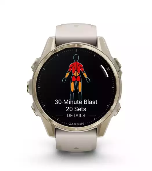 A Fénix 8 óra előre feltöltött ingyenes HIIT, erőnléti, kardió, jóga és pilates edzésekkel rendelkezik, így megválaszhatod azt, ami hozzád illik.