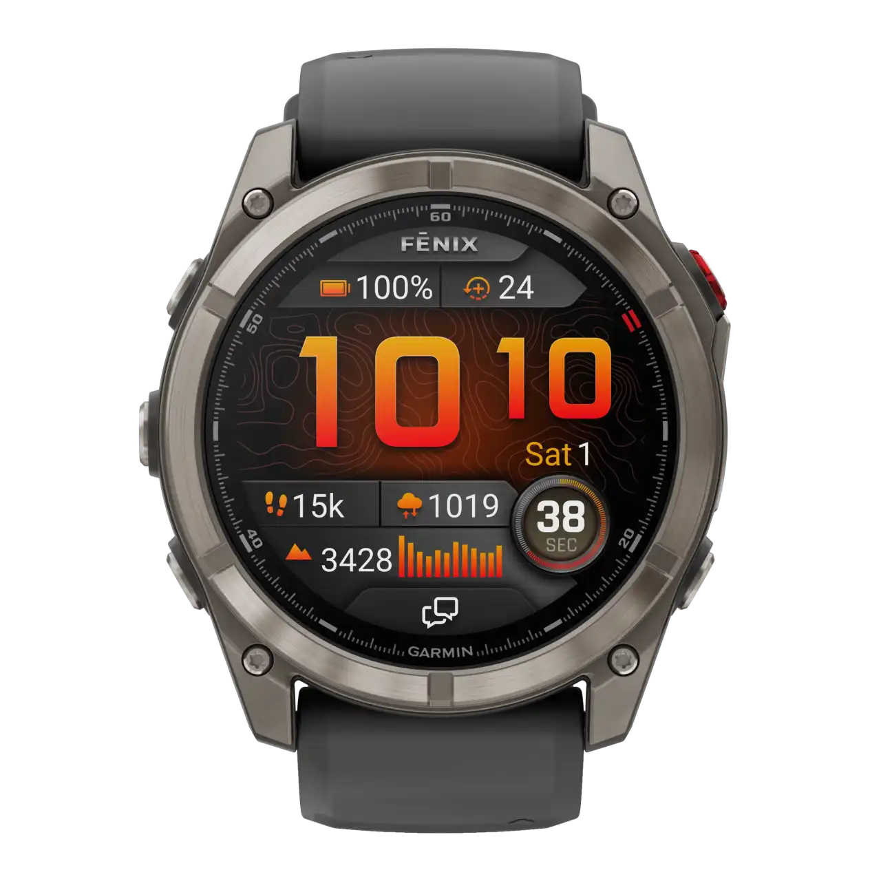 inReach kommunikáció, AMOLED kijelzős 51mm-es óra, mely natúr titán lünettás, zafír számlapos, grafit szilikon óraszíjas