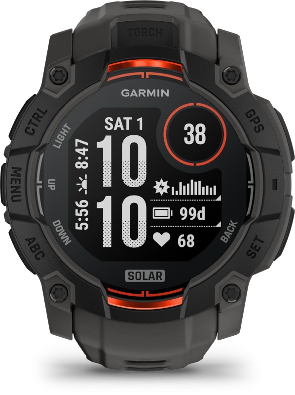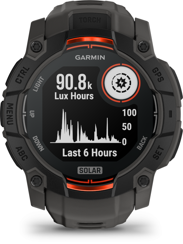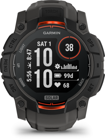 Az Instinct 3 széria legnagyobb órája, napelemes rátöltése hatalmas. A képernyő jól látható. Igazi Outdoor robosztus óra.