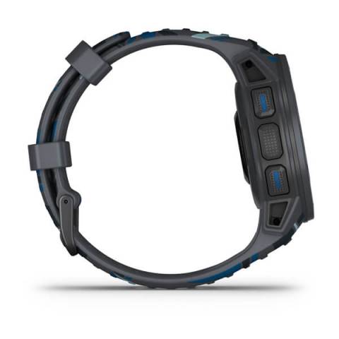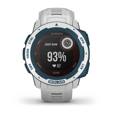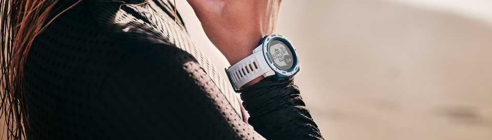 | A napfényével tölti automatikusan az óra az amúgy is nagy üzemidejű akkumulátort. Így kiléphetsz a powerbankok világából. | Az Instinct széria az első órája a garminnak, mely a Katonai 810-es szabvány szerint épült fel. Por, hő, rázkódás és 100 méteres vízállóság. |