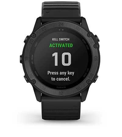 A Kill Switch törli a felhasználói memóriát, így elfogás esetén semmilyen adat nem lesz az órában. Beállítható a funkció gyorsgombnyomásra, mely vakon használható.