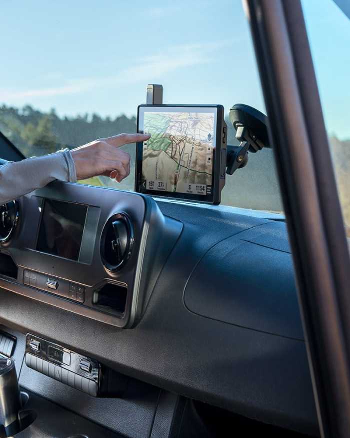 Ez a különlegesen nagy, rendkívül strapabíró terepnavigációs eszköz minden utazásra készült. A szükséges térképekkel segít a helyes úton maradni, és a kommunikációs technológiáknak köszönhetően kapcsolatban maradhatsz akkor is, amikor kint vagy a terepen.