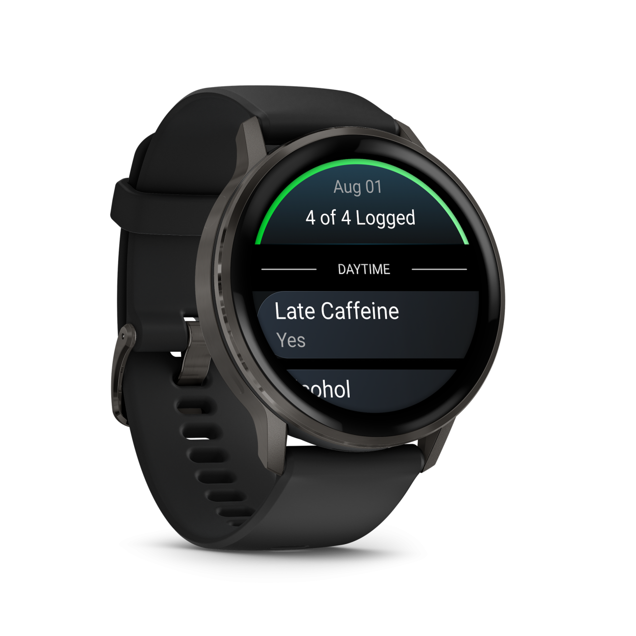 Rögzíts egyéni vagy előre beállított szokásokat — például koffein- és alkoholfogyasztást —, és tekintsd meg a Garmin Connect alkalmazásban, hogyan hatnak ezek az életmódbeli döntések az alvásodra, a stresszre és a HRV³ értékeidre. Így tudatosabb egészségügyi döntéseket hozhatsz.