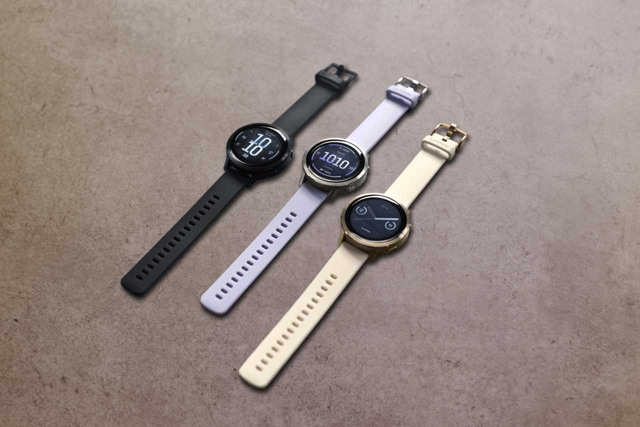 - Éles AMOLED kijelző (1,2″, 390×390 px) – kisebb méret, de ugyanolyan élénk, jól olvasható fényben és edzés közben is.