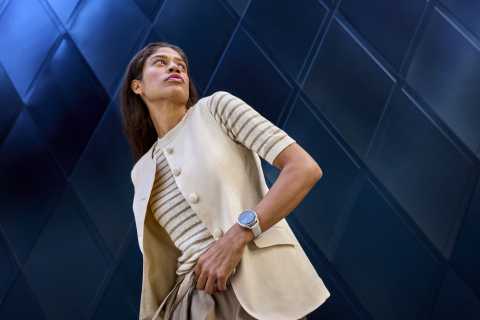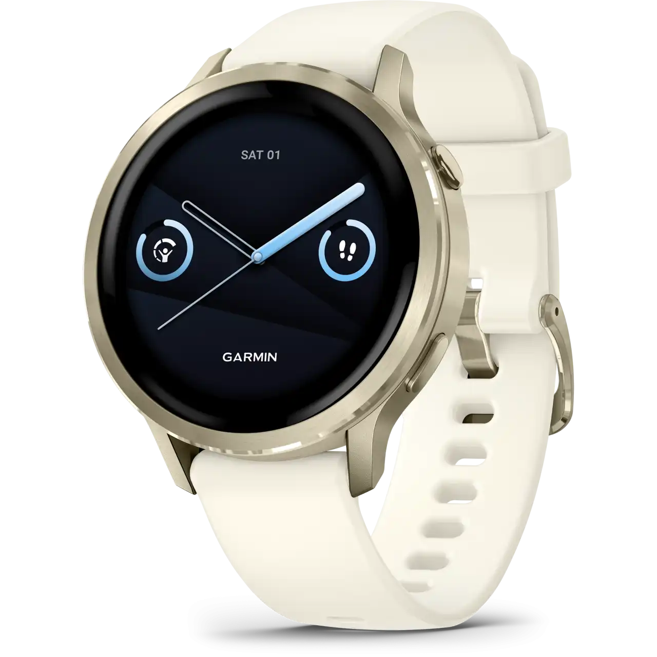 A Venu® 4 női vonalból négy változat érhető el. Webes rendeléseknél továbbra is a két Lunar Gold modell a legnépszerűbb: a hölgyek 83%-a ezt választja. A többség, körülbelül kétharmad, a csontfehér szilikon szíjas órát viszi, mert könnyed, sportos és kényelmes a mindennapokban. A fennmaradó egyharmad inkább a bőrszíjas csomagot kedveli, ahol a homokszínű bőr eleganciát ad a csontfehér szilikon mellett.