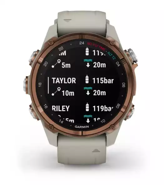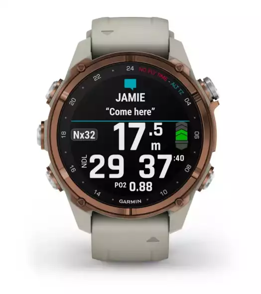 Egy 2023-as búvár és multisport okosóra, AMOLED kijelző. Az i verzióhoz szonáros transmitter is párosítható.