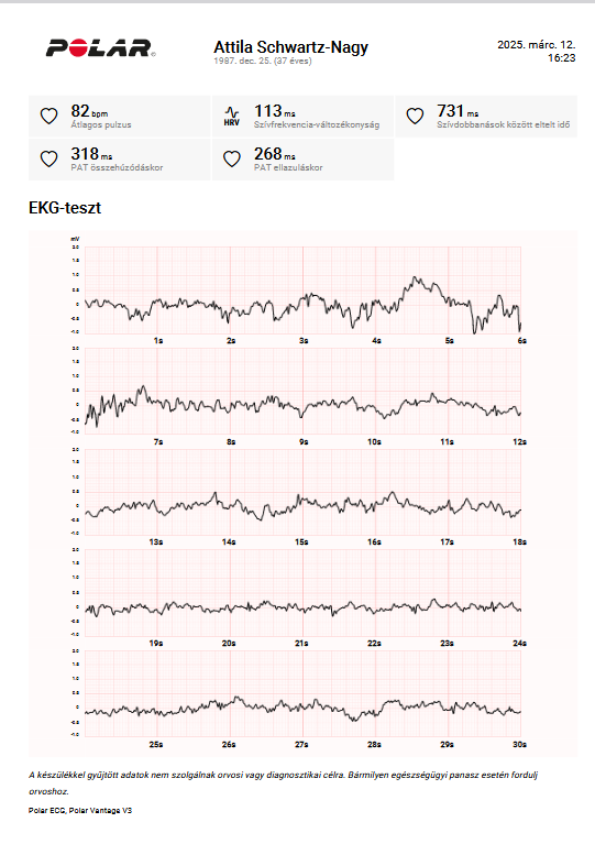 Noha az óra “csak” a pitvarfibrilláció észlelésre alkalmas, a letöltött PDF avatott szem számára egyéb információt is nyújthat, így a kardiológus ezen 1 elvezetéses regisztrátum alapján is felvetheti extra ütések, pitvari-vagy kamrai tachycardia, pitvar-kamrai blokkok gyanúját, melyek megerősítésre természetesen 12 elvezetéses EKG készítése szükséges.