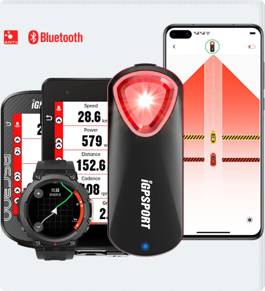 iGPSPORT SR30 intelligens radar hátsó lámpa. Ez a kerékpáros kiegészítő nagy láthatóságot biztosít, 1,6 kilométerről látható, ha hátulról, egyenes vonalú távolságban nézzük. Többféle hátsó lámpa üzemmódot biztosít a különböző használatoknak megfelelően, lehetővé téve a világítási minták vagy a villogó üzemmódok testreszabását az saját beállításaink alapján. A hátsó lámpa kompatibilis a kerékpáros computerekkel, órákkal és a szabványos protokollokat támogató eszközökkel, beleértve az iGPSPORT APP-ot is. Nagy teljesítményű radarjával 150 méteren belül képes érzékelni a közeledő járműveket, időben figyelmeztetve a kerékpározás biztonságát. Emellett az SR30 támogatja a TYPE-C kábelen keresztüli töltést, így biztosítva a kényelmes áramellátást.