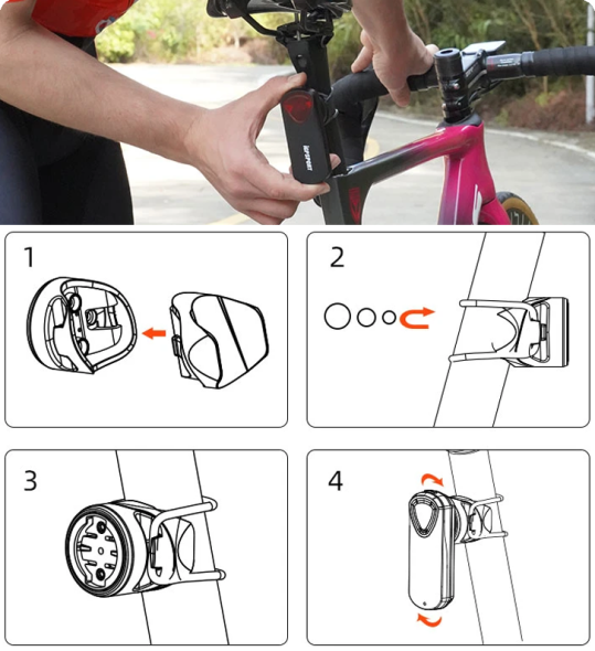 A hátsó lámpába épített autó-radar, amely a mögöttünk közeledő autós forgalmat mutatja Garmin / Bryton vagy Wahoo órán/ computeren...