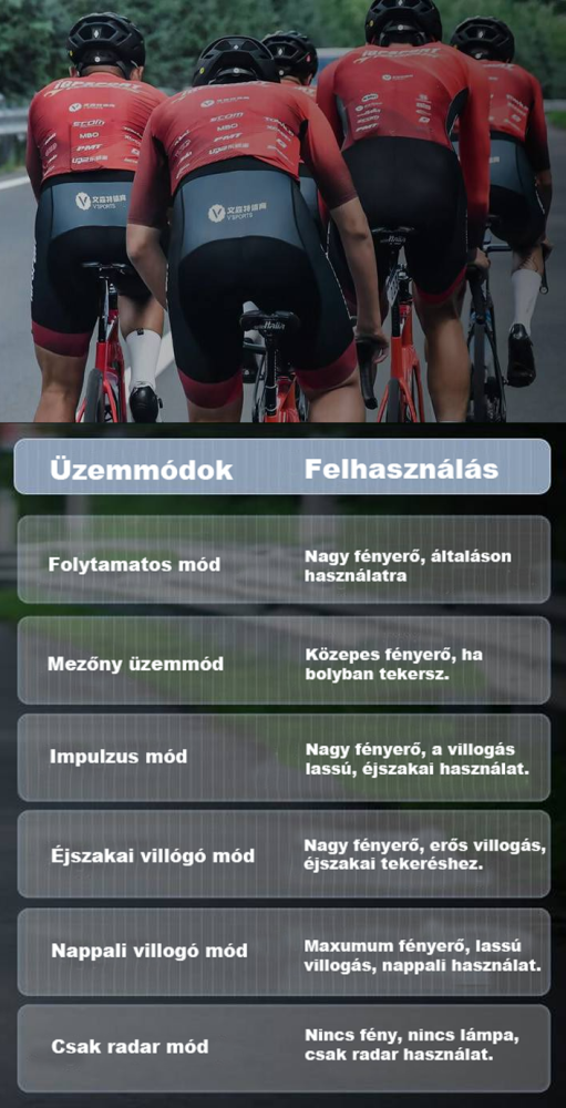 A legújabb fejlesztésű hátsó lámpába épített autó-radar, amely a mögöttünk közeledő autós forgalmat mutatja arra alkalmas Garmin/ Wahoo és Bryton készüléken