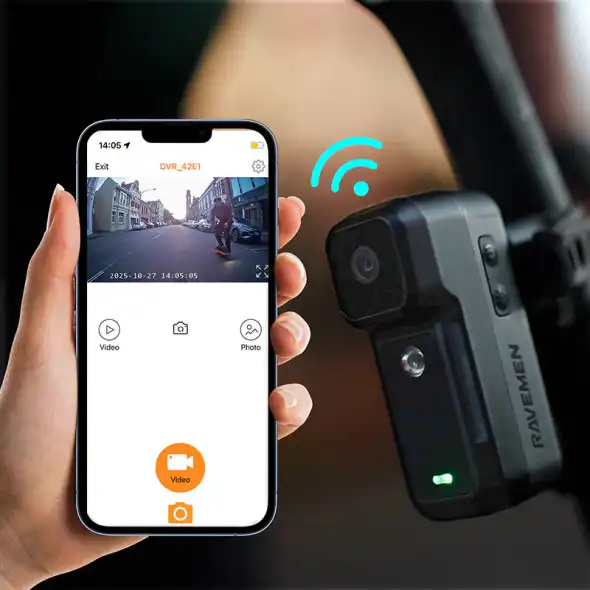 Csatlakoztasd az NT301-et okostelefonodhoz Wi-Fi kapcsolaton keresztül, és nézd élőben a mögötted zajló forgalmat, valamint azonnal ellenőrizd a rögzített felvételeket – mindezt közvetlenül a telefonodon, egyszerűen és kényelmesen.