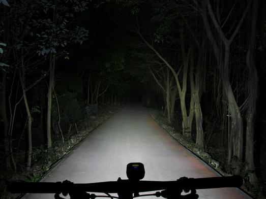 Az autók fényszóróihoz hasonló megvilágítást biztosít: a távolsági fény messzire bevilágítja az ösvényt, míg a széles, közeli tompított fény tükröződésmentes kialakításának köszönhetően nem vakít. Így egyszerre látsz messzire és jól érzékeled a közvetlen előtted lévő akadályokat is – tökéletes választás terepbringázáshoz és éjszakai túrákhoz.