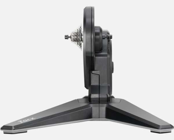 A direkt hajtású görgőknél a kerékpár hátsó kerekét kivesszük, s betesszük helyére az okosgörgőt. A görgőre fel kell tegyünk egy a váltórendszerünkkel kompatibilis fogaskeréksort, tehát ez pluszköltség lesz (minden dirakthajtású görgőnél). Erénye a direkthajtásnak, hogy nincs surlódás, az erőátvitel azonnali, s nagyon halk, azaz a láncot és a váltógörgőket fogjuk legfőképp hallani, illetve nem kopik a külső gumi. A Tacx Flux S trénerbe tehetünk gyorszáras és átütő tengelyes bringákat is, ehhez minden adapter és kiegészítő a csomagban lesz. Kitekerhető wattszáma csak 1500W, amit nem gondolok hátránynak, viszont a forgatónyomatéka fele a Flux 2 tesójának, s negyede a Tacx csúcsgépének a Neo 2T-nek. Lábait 2-2 csavarral kell rögzítenünk,s nagyon stabil köszönhetően a súlyának, a terpesztésének, illetve nincs csuklópont ami itt erény, de szállításnál egyértelmű nehéz dolgunk lesz, ha nem szedjük szét.