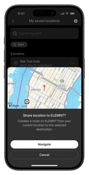 Elég megosztani egy címet telefonról Google vagy Apple Térképből – az ELEMNT pillanatok alatt útvonalat készít hozzá.